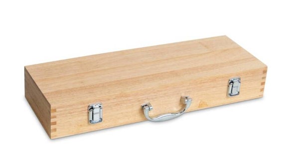 Care: Hand-wash tools only; dry thoroughly. Do not soak or use dishwasher. Wipe wood case with a soft, dry cloth.